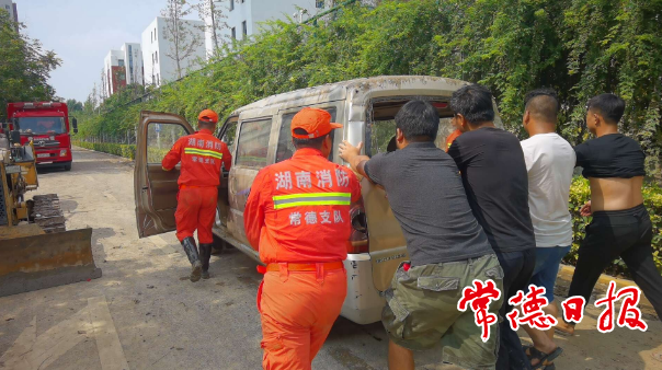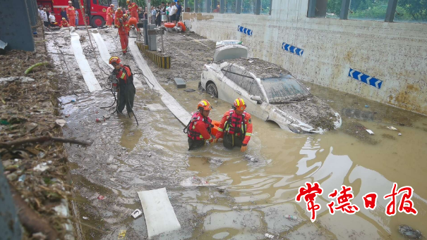 常德消防增援隊伍幫助居民將車輛從地下車庫推出