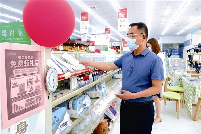 我市各大商場、藥店,生活物資和防疫物資充足,價格穩(wěn)定。圖為市民選購防疫物資