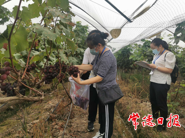 8月16日,市農(nóng)產(chǎn)品質(zhì)量安全檢驗(yàn)檢測(cè)中心工作人員來(lái)到武陵區(qū)、鼎城區(qū)等地葡萄園,開(kāi)展為期3天的葡萄質(zhì)量安全專項(xiàng)監(jiān)測(cè),為葡萄上市前進(jìn)行“體檢”。