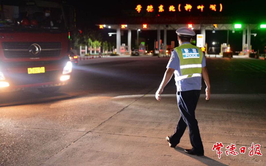 夜里,東常高速出入口執(zhí)勤的交警