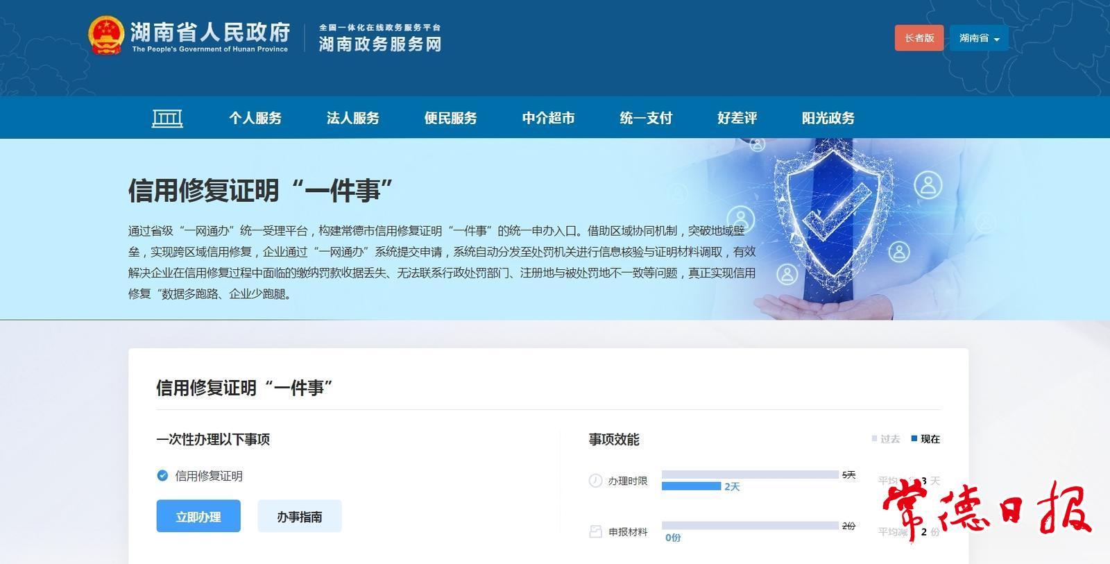 全國首創(chuàng)!常德實現(xiàn)行政處罰信用修復(fù)證明異地可辦、全程網(wǎng)辦