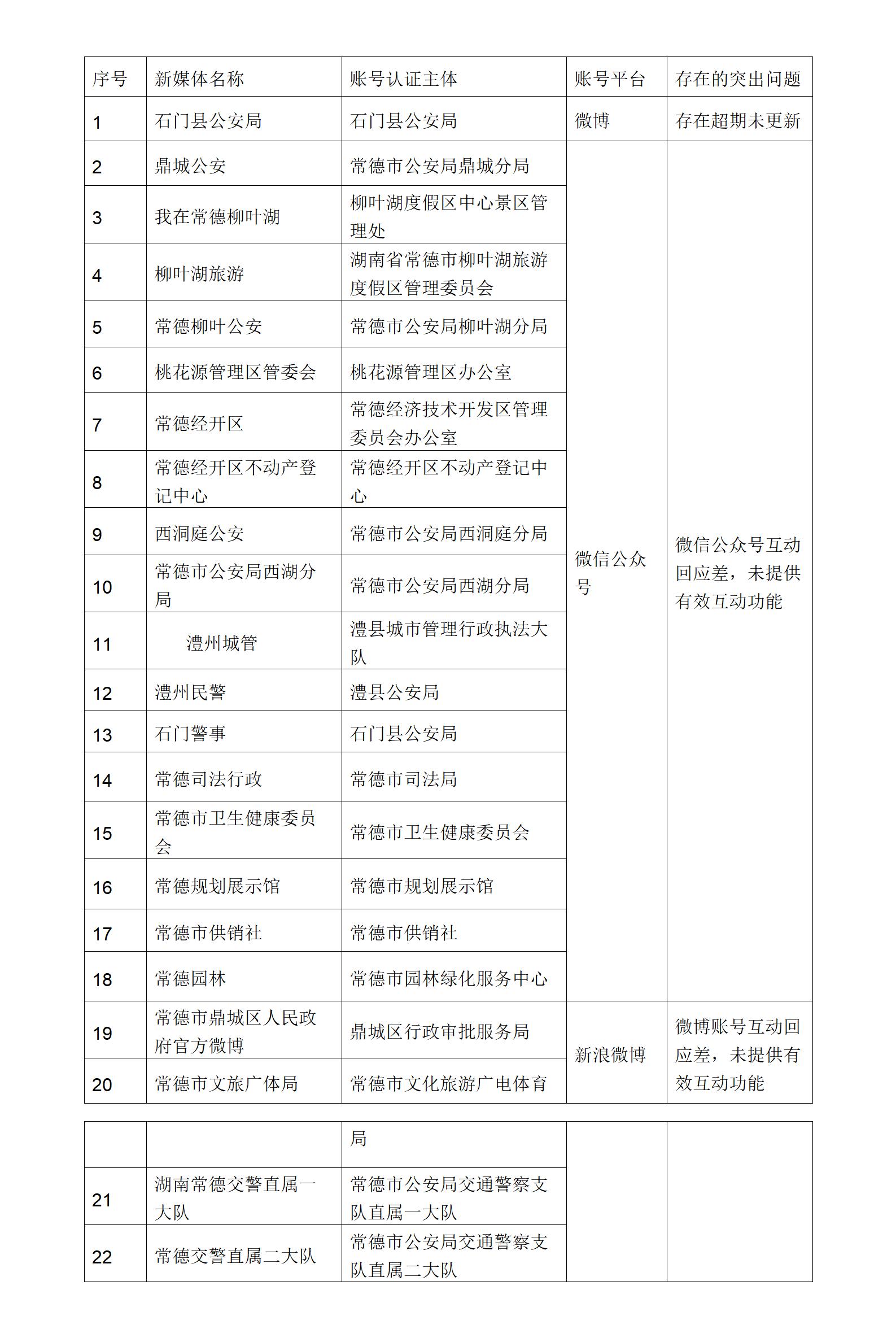 政務新媒體方面?!笆T縣公安局”微博存在超期未更新情況。鼎城公安、我在常德柳葉湖、桃花源管理區(qū)管委會、常德市衛(wèi)生健康委員會等微信公眾號互動回應差,未提供有效互動功能。常德市文旅廣體局、湖南常德交警直屬一大隊等微博互動回應差,未提供有效互動功能。