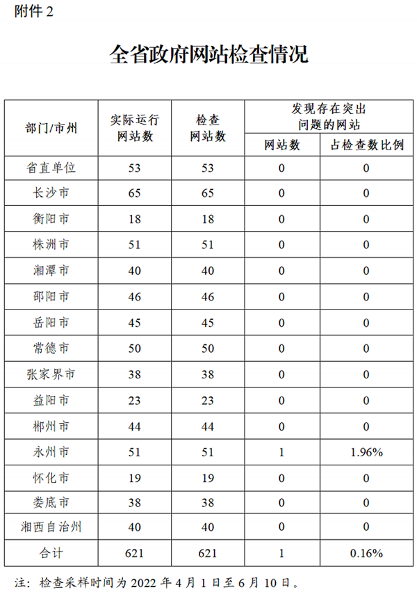 湖南省政務(wù)管理服務(wù)局關(guān)于2022年第二季度全省政府網(wǎng)站與政務(wù)新媒體檢查情況的通報