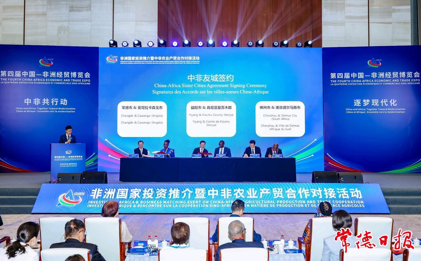 6月13日,常德市與安哥拉南隆達(dá)省卡森戈市簽訂建立友好城市關(guān)系協(xié)議,正式締結(jié)友好城市。6月14日,卡森戈市市長弗朗西斯卡·曼甘達(dá)一行來??疾?。市委書記羅毅君與弗朗西斯卡·曼甘達(dá)一行座談。市委副書記、市長周振宇在第四屆中國—非洲經(jīng)貿(mào)博覽會“非洲國家投資推介暨中非農(nóng)業(yè)產(chǎn)貿(mào)合作對接活動”上代表常德市簽約。