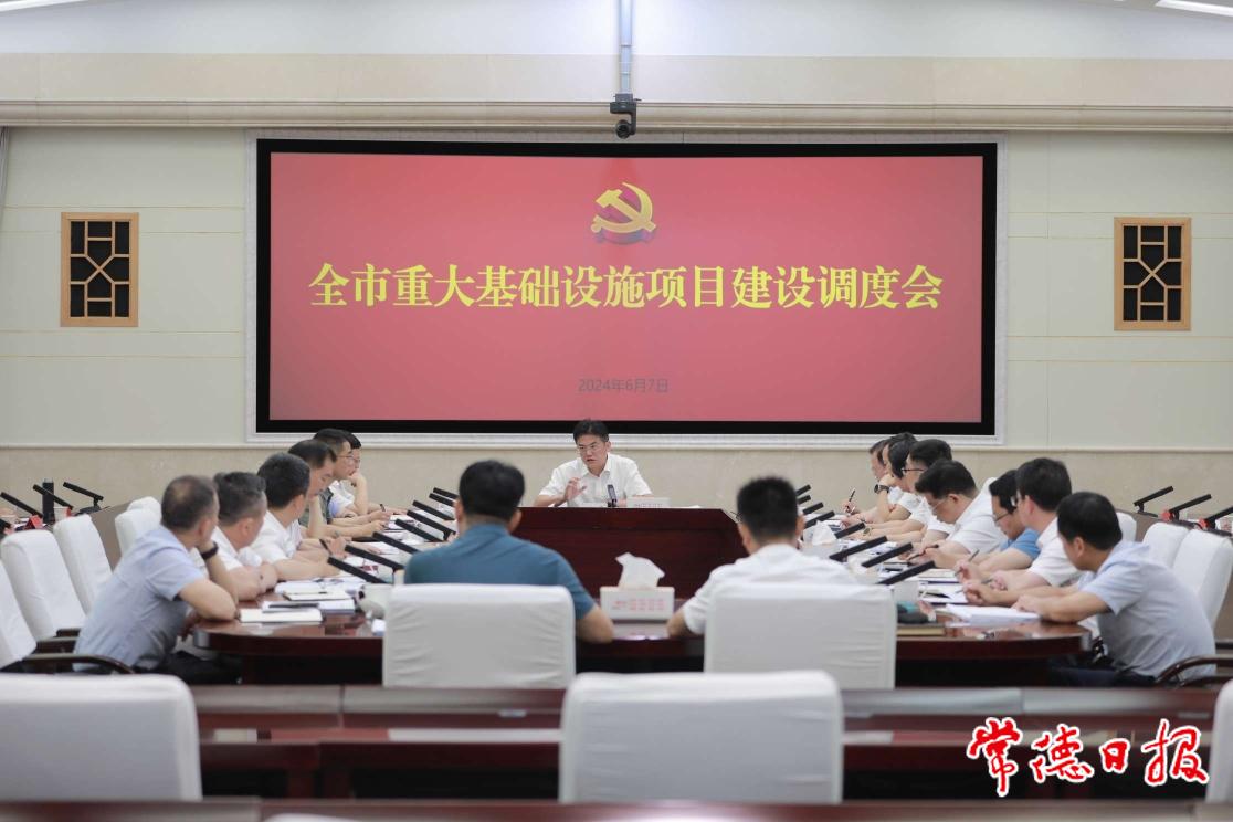 6月7日,市委書記羅毅君主持召開全市重大基礎(chǔ)設(shè)施項(xiàng)目建設(shè)調(diào)度會(huì),聽取相關(guān)情況匯報(bào),研究解決突出問題,加快推進(jìn)項(xiàng)目建設(shè)。他強(qiáng)調(diào),重大基礎(chǔ)設(shè)施項(xiàng)目是擴(kuò)投資、穩(wěn)增長(zhǎng)的重要抓手,也是錨定“三個(gè)高地”、推進(jìn)“二次創(chuàng)業(yè)”的重要支撐。全市上下要搶抓政策機(jī)遇,全力以赴抓項(xiàng)目、擴(kuò)投資、促發(fā)展,持續(xù)掀起重大基礎(chǔ)設(shè)施項(xiàng)目建設(shè)熱潮,推動(dòng)常德高質(zhì)量發(fā)展取得更大成效。市委副書記、市長(zhǎng)周振宇出席會(huì)議。