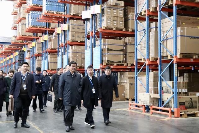 2月12日,副省長何報翔赴長沙望城經(jīng)開區(qū)、雨花經(jīng)開區(qū)調(diào)研。圖為何報翔參觀蘇寧物流基地。