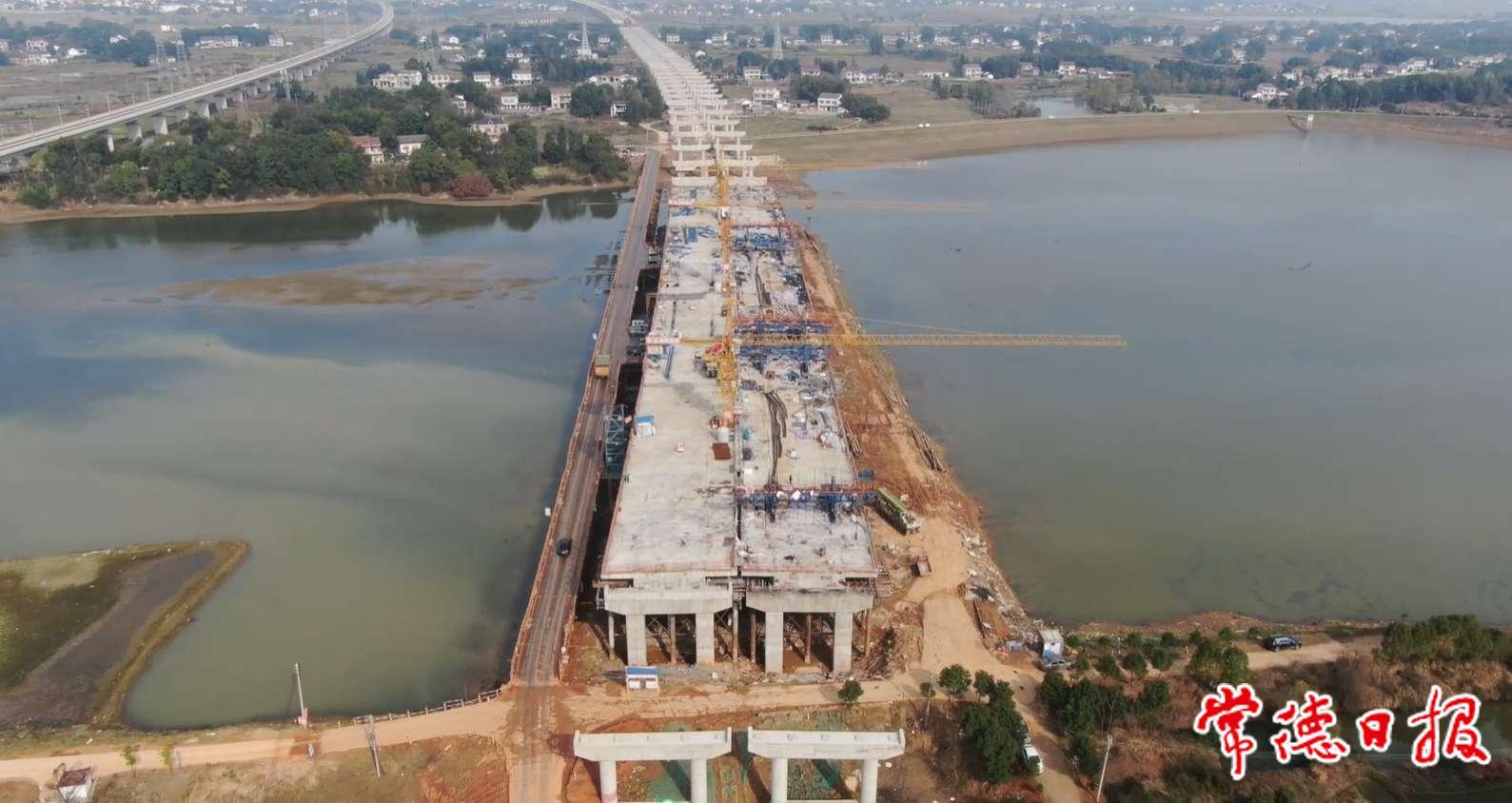 益常高速擴(kuò)容工程漢壽南1號(hào)特大橋主橋全幅貫通
