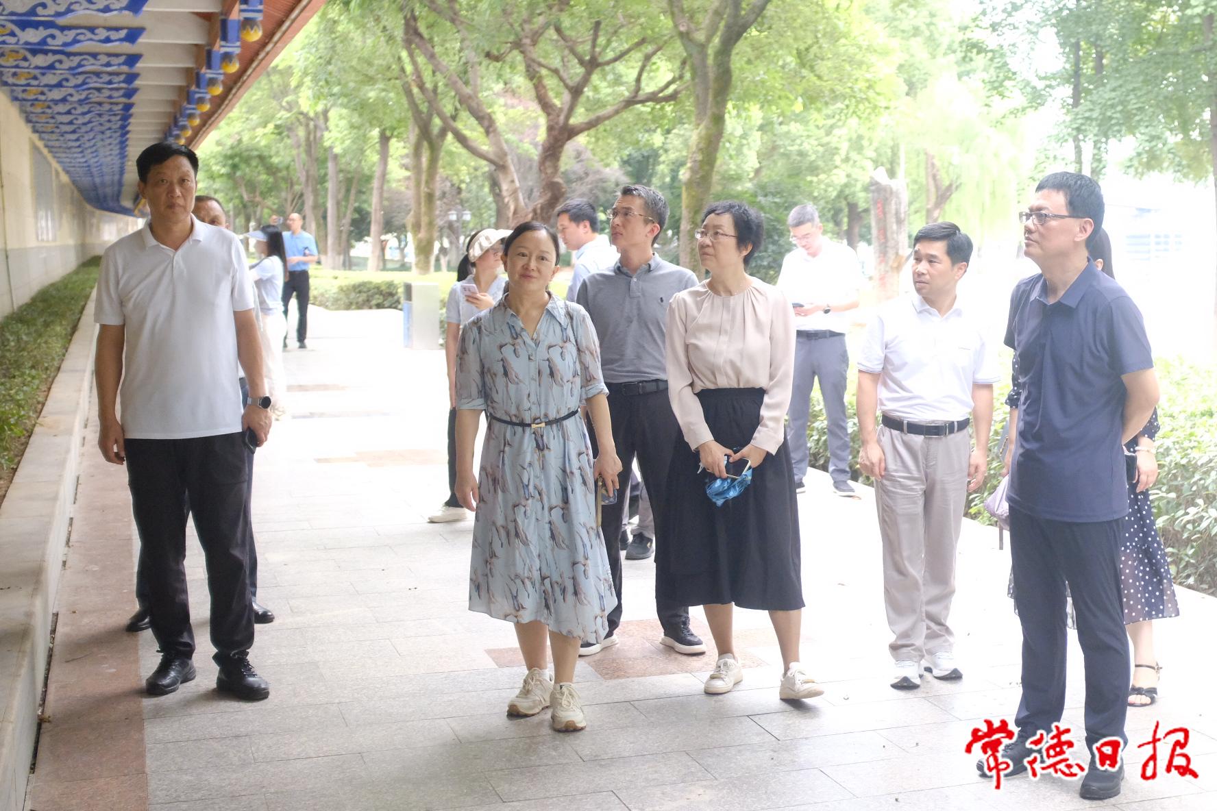 在常德期間,調(diào)研組一行實(shí)地走訪了中國(guó)常德詩(shī)墻、常德河街。一路上,李育智與客人們邊走邊聊,詳細(xì)介紹了常德市情、生態(tài)文明立法、水環(huán)境治理、水利設(shè)施綜合利用等情況。聊到興起,李育智還當(dāng)起了講解員,建設(shè)背景、立法由來(lái)、發(fā)展目標(biāo)等娓娓道來(lái)??腿藗兟牭媒蚪蛴形?,時(shí)不時(shí)地就有關(guān)問(wèn)題與常德市人大常委會(huì)的有關(guān)人員進(jìn)行討論和交流。
