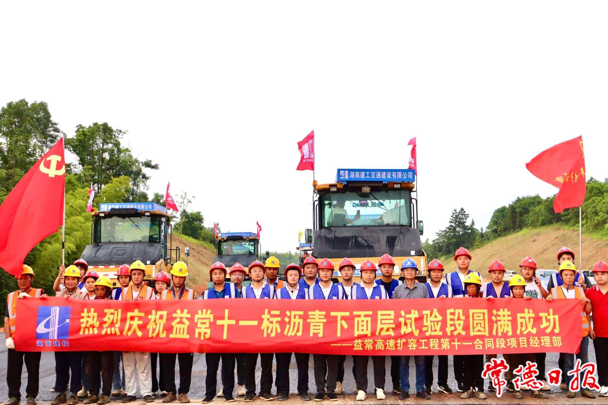 連日來,常德市天氣晴好,是項目施工建設的黃金期。益常高速擴容工程建設者們搶抓時機,開啟項目建設“加速度”。8月16日,該工程十一標首段瀝青下面層試驗段順利攤鋪完成,全面進入瀝青路面施工階段。