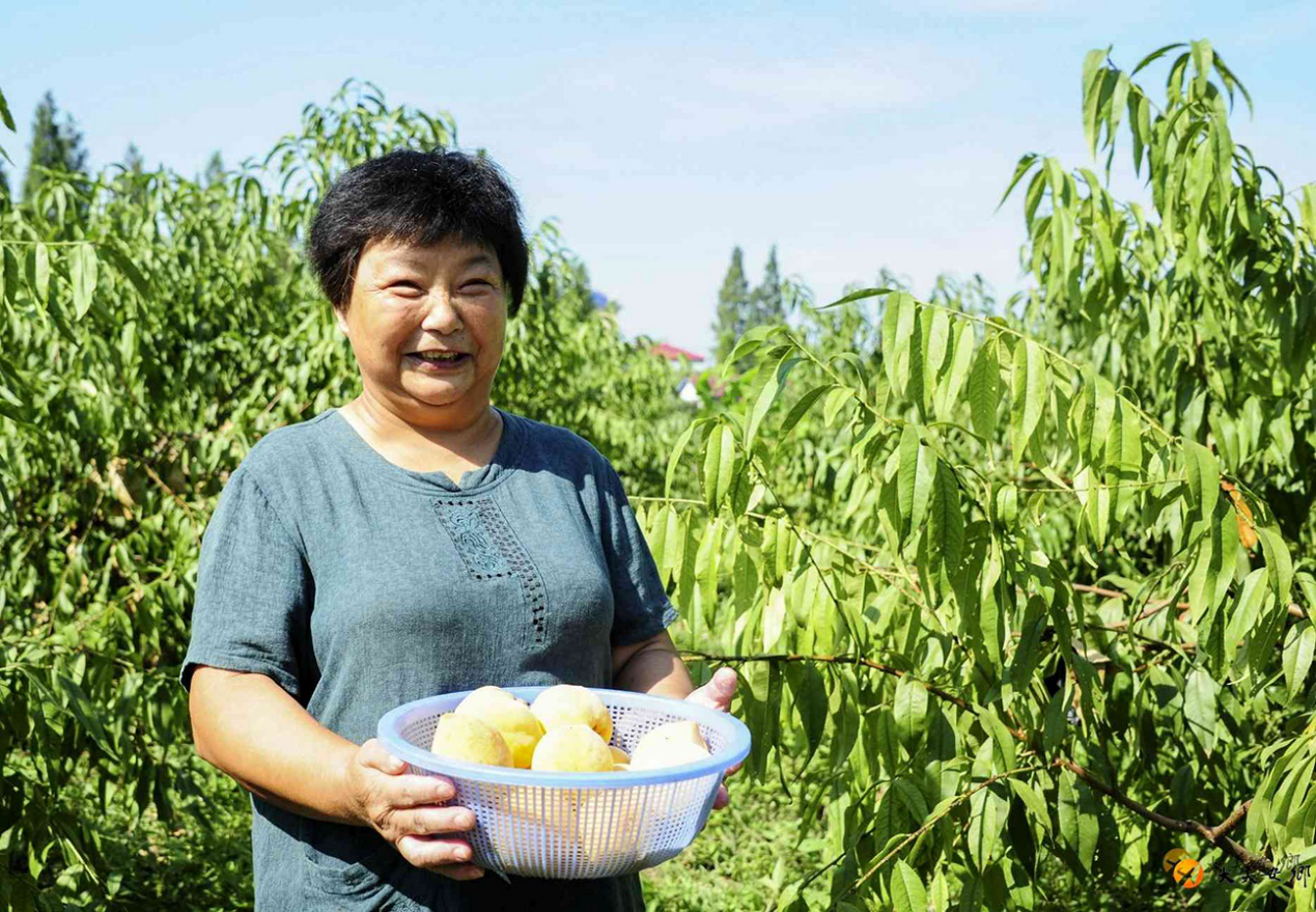 呂友國的老伴在自家黃桃園采摘今夏最后一批黃桃。呂友國是2014年建檔立卡貧困戶,在各項扶貧政策的幫扶下,種植了1畝多黃桃和近4畝的湘蓮,2015年順利脫貧。幾年來,一家人吃苦耐勞,日子越過越紅火,2019年人均年收入達到9986元,穩(wěn)步走上了勤勞致富之路。