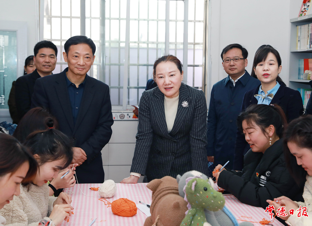 當日上午,在鼎城區(qū)許家橋回維鄉(xiāng)中堰村,調(diào)研組一行實地參觀了當?shù)亍皨D女兒童之家”,與學習手工編織技能的婦女群眾親切交流。在鼎城區(qū)草坪鎮(zhèn)芙蓉學校,調(diào)研組一行參加了“鄉(xiāng)村振興巾彩綻放”三下鄉(xiāng)百場公益活動啟動儀式,還在草坪鎮(zhèn)陡惠渠社區(qū)體驗了市婦聯(lián)“我心向黨巾彩綻放”巾幗大宣講草坪站活動。