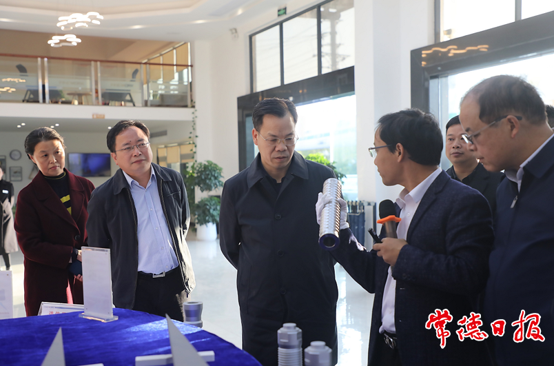 胡建新(中)一行在飛沃新能源科技股份有限公司聽公司負責人介紹情況