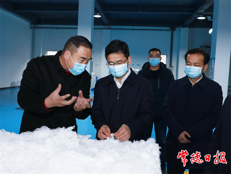 曹志強(qiáng)在西湖管理區(qū)湖南仁瑞無紡制品有限公司調(diào)研紡織工業(yè)和安全生產(chǎn)工作
