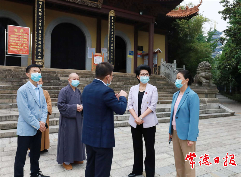 陳華一行檢查了乾明寺和善德觀的安全生產(chǎn)隱患排查及疫情防控常態(tài)化工作,并就相關(guān)工作提出了明確要求。她指出,要切實提高認識。要深入學(xué)習(xí)領(lǐng)會習(xí)近平總書記、李克強總理等中央領(lǐng)導(dǎo)同志關(guān)于長沙望城“4·29”居民自建房倒塌事故的重要指示批示精神,以高度的政治責(zé)任感抓好宗教領(lǐng)域安全生產(chǎn)工作。要堅持生命至上。宗教活動場所屬于人員聚集性公共場所,各級黨委主要負責(zé)人要履行好第一責(zé)任人責(zé)任,按照屬地管理原則對宗教場所安全生產(chǎn)工作進行重點監(jiān)管,保障人民群眾的生命財產(chǎn)安全。要限期排查整改。盡快請專業(yè)機構(gòu)對所有宗教活動場所房屋建筑安全進行鑒定和排查,該整改按要求整改,該規(guī)范按標(biāo)準(zhǔn)規(guī)范;市宗教事務(wù)管理部門要采取“四不兩直”方式,對整改情況進行跟蹤、督查,對敷衍塞責(zé)、工作不力的進行問責(zé),確保整改落地落實。