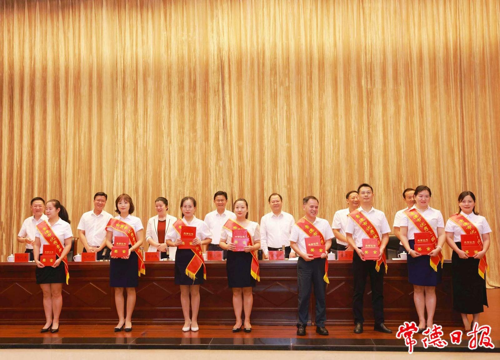 會(huì)議宣讀了常德市第八屆“鄉(xiāng)村紅燭獎(jiǎng)”、常德市優(yōu)秀教師、常德市優(yōu)秀教育工作者、常德市最美人民教師、常德市優(yōu)秀校(園)長、常德市優(yōu)秀班主任、常德市師德標(biāo)兵、常德市優(yōu)秀青年教師的表彰通報(bào),并為獲獎(jiǎng)教師代表頒獎(jiǎng)。常德市優(yōu)秀教師、常德市優(yōu)秀校長、常德市最美人民教師獲獎(jiǎng)?wù)叽硐群蟀l(fā)言。新入職教師代表進(jìn)行了入職宣誓。