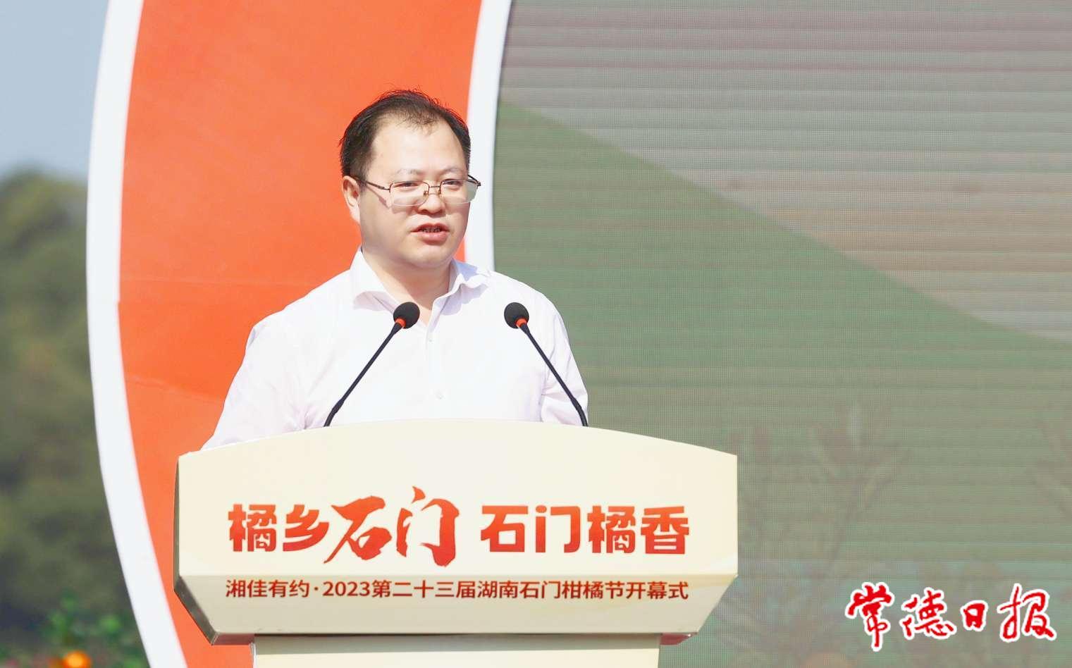 “衷心希望石門縣以此次柑橘節(jié)的成功舉辦為契機,加快推動柑橘、茶葉等特色產(chǎn)業(yè)高質(zhì)量發(fā)展,為全市打造農(nóng)產(chǎn)品精深加工千億產(chǎn)業(yè)集群作出更大貢獻?!敝苷裼钪赋?,近年來,常德深入實施鄉(xiāng)村振興提速專項行動,加快推動農(nóng)業(yè)農(nóng)村現(xiàn)代化,因地制宜打造“一縣一特”“一鄉(xiāng)一品”,培育了以石門柑橘、漢壽甲魚、澧縣葡萄等為代表的一大批優(yōu)勢產(chǎn)業(yè)和優(yōu)質(zhì)品牌,以湘佳牧業(yè)等為代表的110家國省級農(nóng)業(yè)產(chǎn)業(yè)化龍頭企業(yè),2022年全市農(nóng)產(chǎn)品精深加工業(yè)產(chǎn)值達800億元。