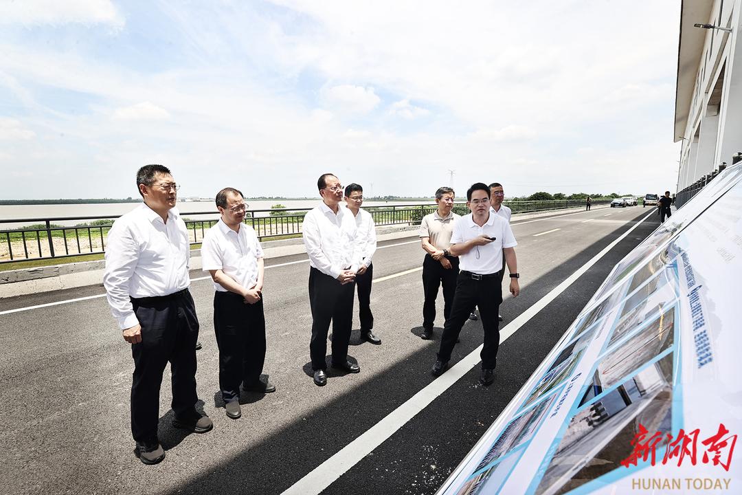 毛偉明在漢壽縣圍堤湖分洪閘調(diào)研
