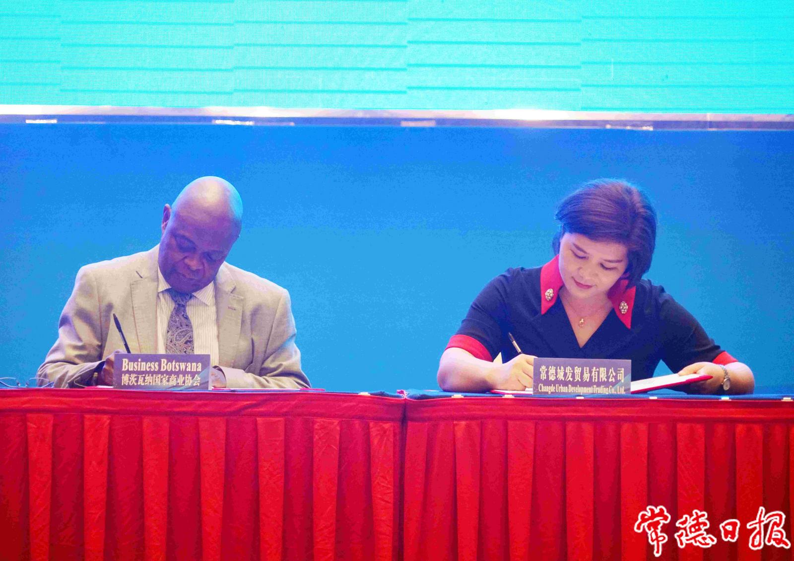 博茨瓦納國家商會代表與常德城發(fā)貿(mào)易公司代表簽訂合作備忘錄
