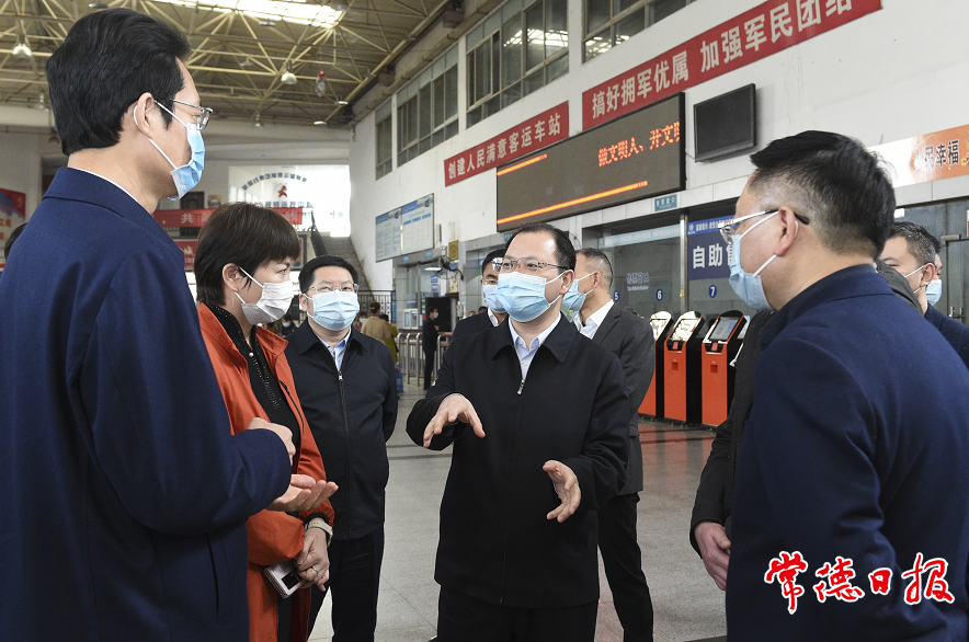 在柳葉湖車站、常德火車站等地,周振宇實(shí)地查看出入站口、檢測(cè)點(diǎn)等重點(diǎn)部位,詳細(xì)了解交通安全保障和疫情防控措施落實(shí)情況。我市嚴(yán)格落實(shí)交通站場(chǎng)進(jìn)出口防控管理措施,相關(guān)部門(mén)抽調(diào)專門(mén)人員輪流值守,確保24小時(shí)防控不斷更。周振宇叮囑大家要注意個(gè)人防護(hù),同時(shí)要加強(qiáng)外地入常人員信息排查和閉環(huán)管理,堅(jiān)持“人物同防”,確?!巴夥垒斎搿比f(wàn)無(wú)一失。在大西門(mén)碼頭,周振宇詳細(xì)了解碼頭基礎(chǔ)設(shè)施建設(shè)、渡航安全及疫情防控措施落實(shí)等情況,希望相關(guān)部門(mén)、企業(yè)要落實(shí)落細(xì)安全生產(chǎn)責(zé)任,確保疫情防控安全、水上交通安全和環(huán)保安全。在常德芷蘭實(shí)驗(yàn)學(xué)校,周振宇指出,校園疫情防控至關(guān)重要,要突出家校共防,引導(dǎo)家長(zhǎng)配合做好疫情防控工作,共同維護(hù)校園防疫安全。