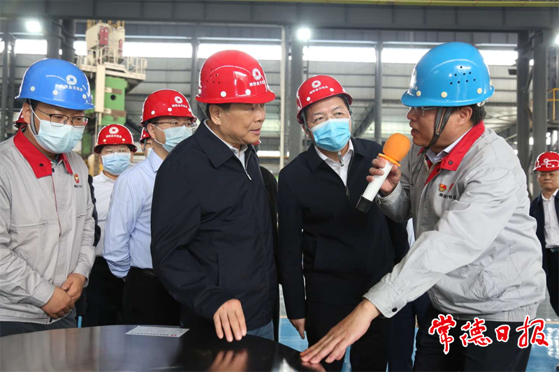 在常德經(jīng)開區(qū),陳飛一行先后前往常德港德山港區(qū)、武陵酒提質(zhì)改造項(xiàng)目、湖南湘投金天鈦業(yè)科技有限公司調(diào)研。在常德港德山港區(qū),陳飛指出,要充分挖掘和發(fā)揮常德的水運(yùn)優(yōu)勢(shì),大力發(fā)展常德港口事業(yè),進(jìn)一步推動(dòng)常德的外向型經(jīng)濟(jì)發(fā)展。在武陵酒提質(zhì)改造項(xiàng)目,陳飛叮囑企業(yè)負(fù)責(zé)人,要瞄準(zhǔn)市場(chǎng)需求,不斷提升釀酒技術(shù),提升產(chǎn)品品質(zhì),開發(fā)出更符合消費(fèi)者需求的白酒產(chǎn)品。在湖南湘投金天鈦業(yè)科技有限公司,陳飛詳細(xì)了解了企業(yè)生產(chǎn)經(jīng)營(yíng)情況,他指出,要進(jìn)一步強(qiáng)化現(xiàn)代企業(yè)理念,加強(qiáng)人才隊(duì)伍培養(yǎng),瞄準(zhǔn)市場(chǎng)需求、對(duì)標(biāo)世界一流,加大關(guān)鍵核心技術(shù)攻堅(jiān)力度,以創(chuàng)新引領(lǐng)推動(dòng)企業(yè)不斷發(fā)展壯大。