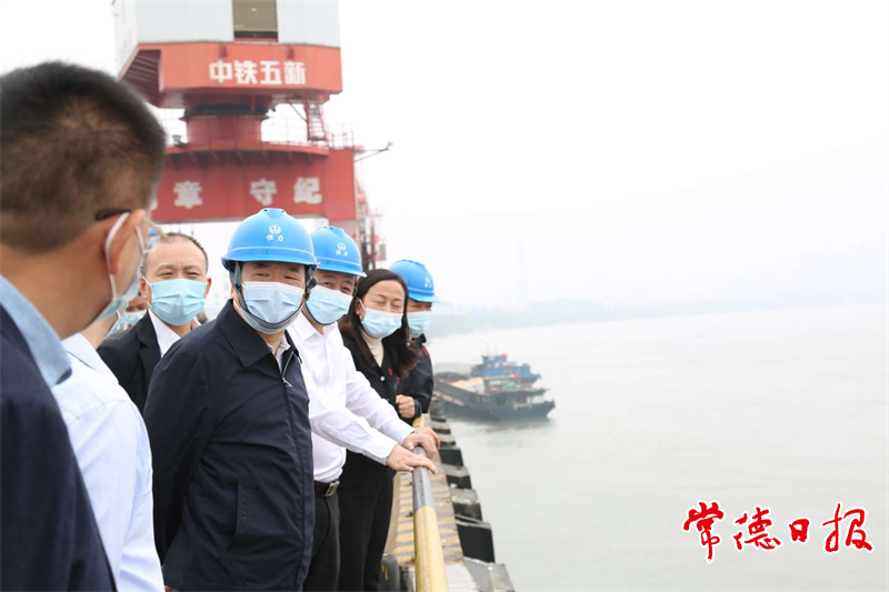 陳飛一行在常德港德山港區(qū)調(diào)研