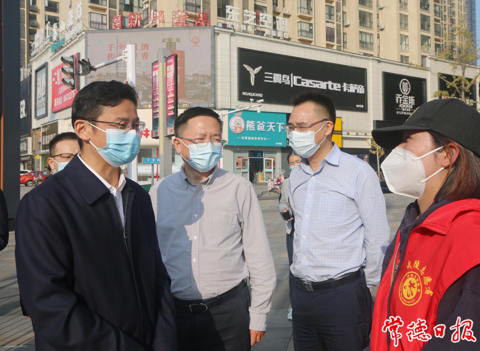 曹志強(qiáng)在柳葉湖旅游度假區(qū)七里橋社區(qū)督導(dǎo)疫情防控工作