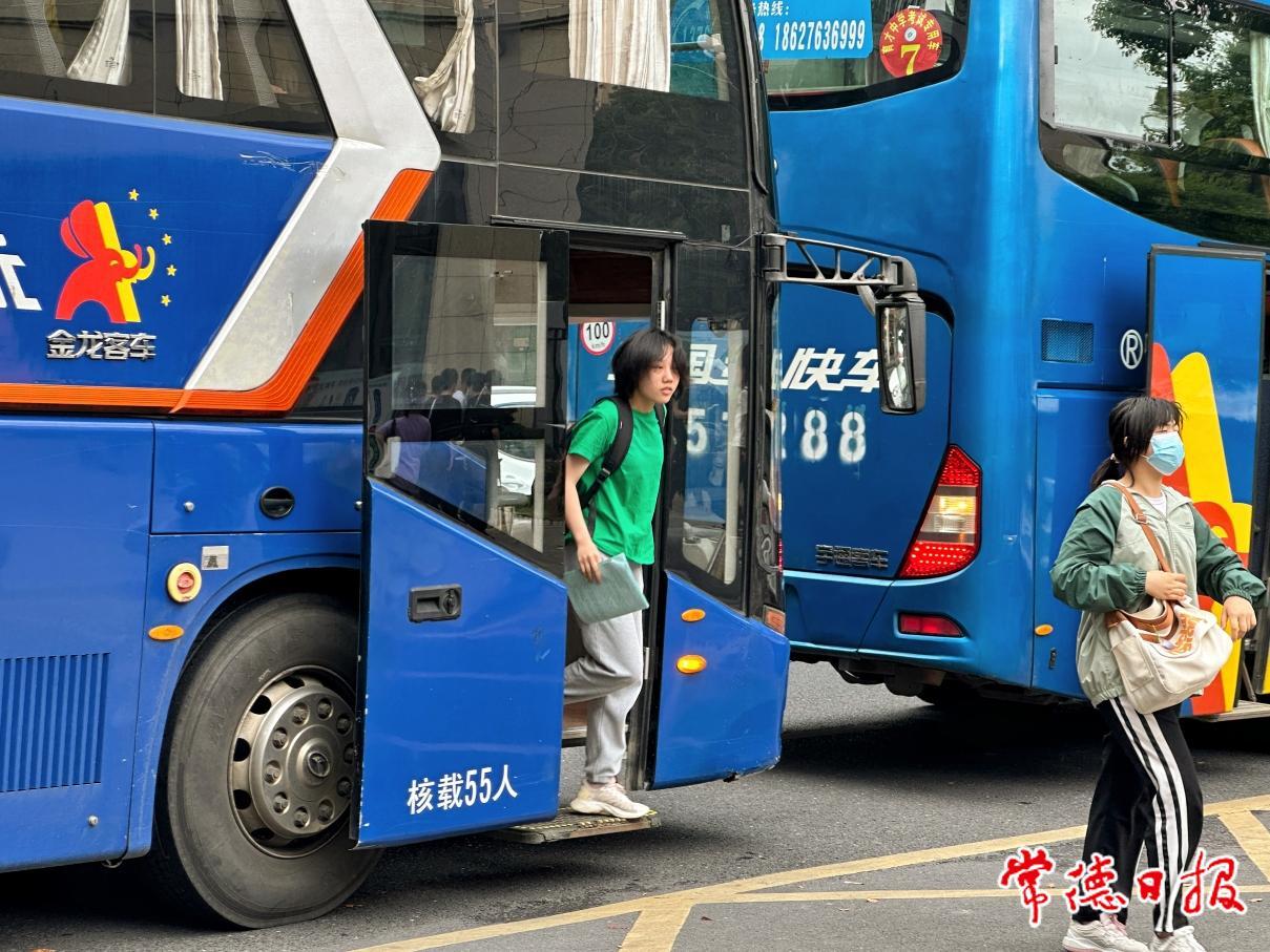 考生們搭乘車輛到達(dá)考點(diǎn)