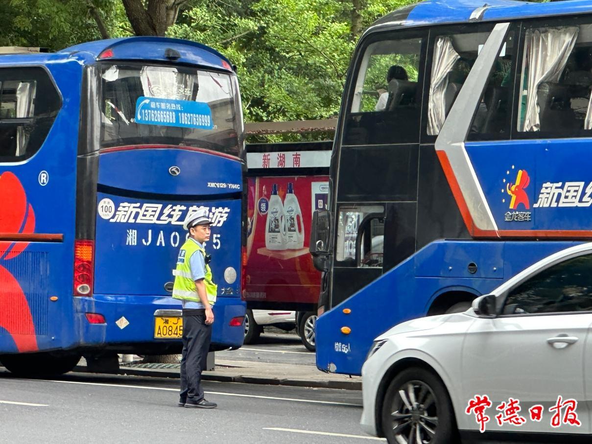 值守民警指揮過(guò)往車輛,確??键c(diǎn)周圍的秩序