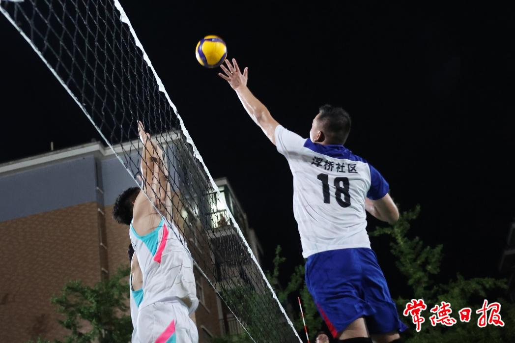 “關(guān)天,關(guān)天,一馬當(dāng)先?!?月3日晚9時(shí),在新坡社區(qū)大樓前坪,關(guān)天坪社區(qū)對(duì)戰(zhàn)新安社區(qū)的精英賽現(xiàn)場(chǎng),加油聲響徹天空。 賽場(chǎng)內(nèi),球員們揮汗如雨,一傳、二傳、扣球一氣呵成,攔網(wǎng)、防守、撲救精彩絕倫。賽場(chǎng)外,居民的歡呼聲、助威聲、鑼鼓聲此起彼伏,氣氛熱烈。中場(chǎng)休息期間,各個(gè)社區(qū)居民自發(fā)組成的啦啦隊(duì)帶來(lái)自編自導(dǎo)的群體表演。