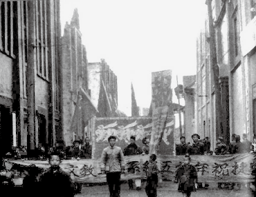 人民路 觀音橋至太子廟,圖為津市文教系統(tǒng)的祝捷游行。(攝于1959 年,葛樂(lè)山供圖)