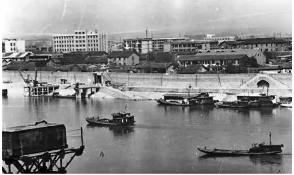 西河街 近處為原長(zhǎng)津輪船公司。(攝于20世紀(jì)50年代,沈文泉供圖)
