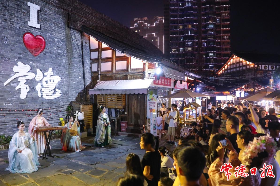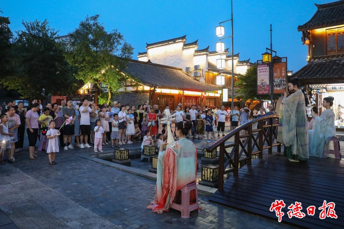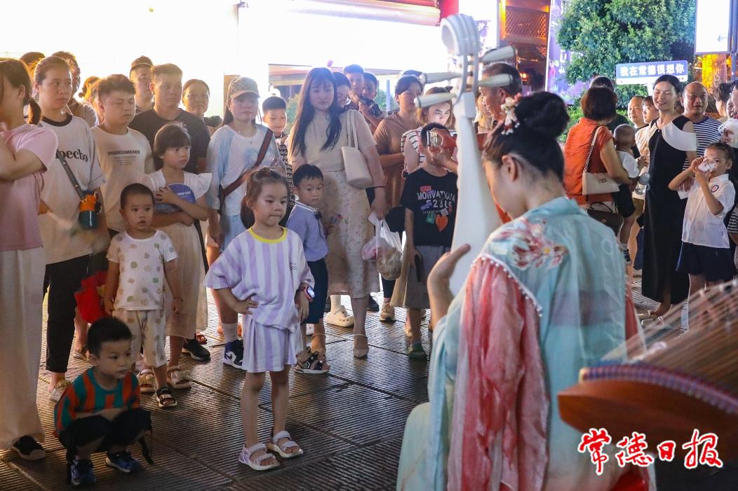 7月10日晚,夜色中的常德河街國風流淌,夏季國風民樂巡游演藝現(xiàn)場人頭攢動、熙來攘往,一場流動的文化饗宴讓市民游客感受到了古今交織的多元時空魅力。