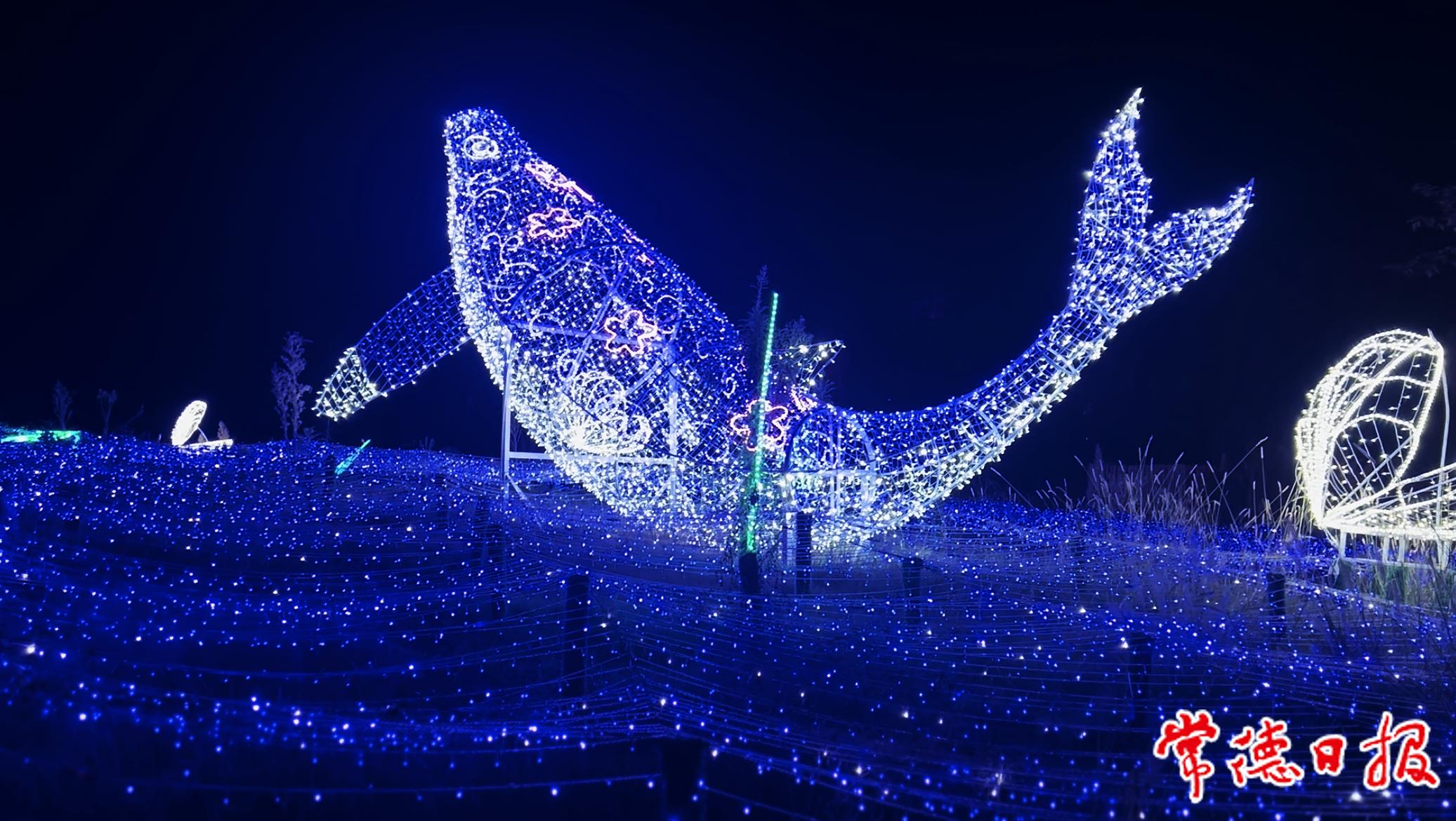 中秋小長(zhǎng)假的第一天,柳葉湖漁歌藝術(shù)營(yíng)地迎來(lái)不少游客。走進(jìn)柳葉湖漁歌藝術(shù)營(yíng)地,首先映入眼簾的就是各式各樣的實(shí)景燈光秀,閃爍的熒光草叢、壯觀的龍形燈光模型、由幾千個(gè)燈籠制成的巨型方形燈光模型……讓游客仿佛置身夢(mèng)境。正在游客們拍照打卡的時(shí)候,一旁一條幾十米長(zhǎng)的大型龍舟開(kāi)始提醒游客登船。乘坐龍舟緩緩行駛在柳葉湖湖面上,月光燈光交相輝映,美不勝收。