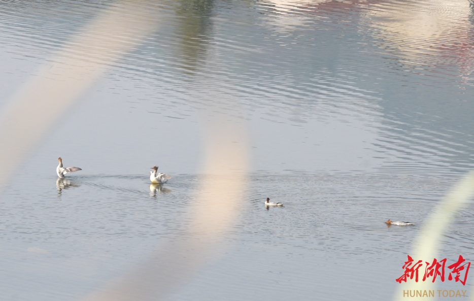 眼下正是候鳥越冬的季節(jié),在石門仙陽湖國(guó)家濕地公園,10只遠(yuǎn)道而來的中華秋沙鴨現(xiàn)身湖面。它們徜徉在水中,或舒展身軀,或覓食嬉戲,與樹木的倒影、波光粼粼的水面構(gòu)成一幅冬日美景。
