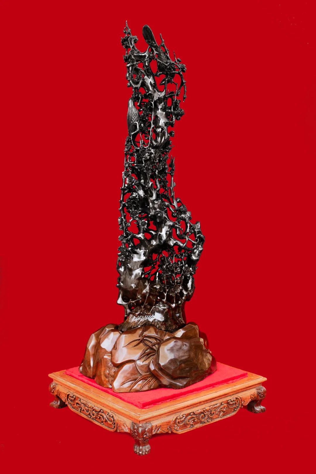 朱建兵為桃源木雕嫡傳弟子,繼承了桃源木雕的全部技藝。這幅木雕作品將喜鵲的靈動(dòng)與梅花的靜、美完美結(jié)合。喜鵲的活潑象征著生活的活力與喜悅,梅花的傲雪凌霜?jiǎng)t代表著堅(jiān)韌不拔的精神和對(duì)美好品質(zhì)的追求。兩者相互映襯,傳遞出對(duì)幸福生活的向往和對(duì)未來(lái)的美好期許。
