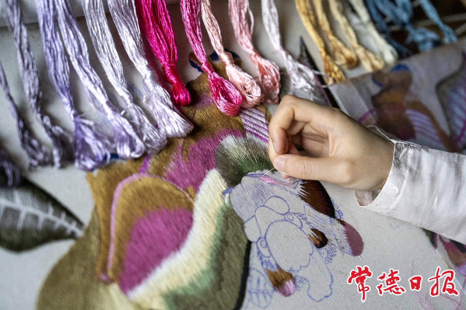 在桃源縣鄭家驛鎮(zhèn)梨子崗村齊繪繡莊,肖瑤在進行刺繡創(chuàng)作