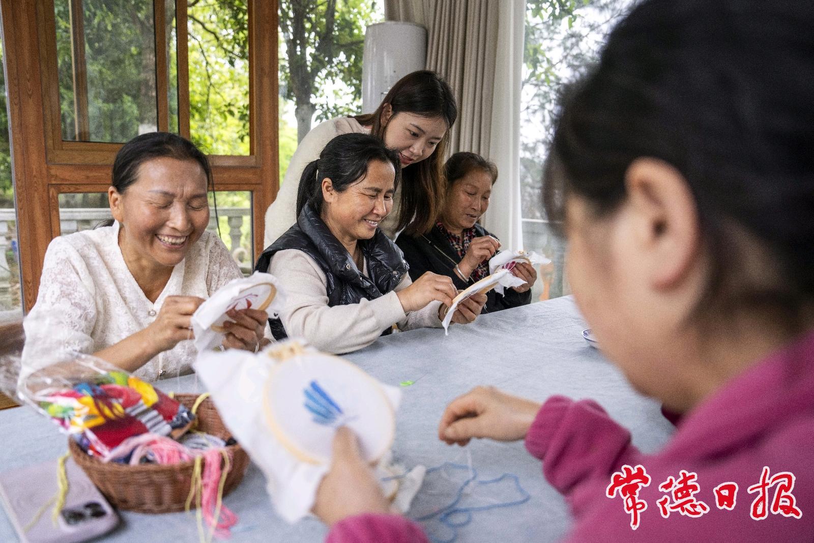 肖瑤帶領周邊婦女學習刺繡技藝