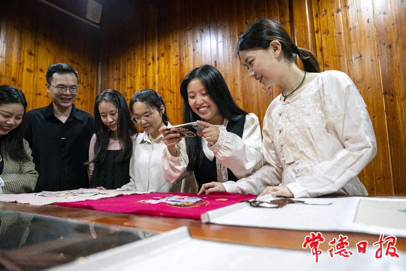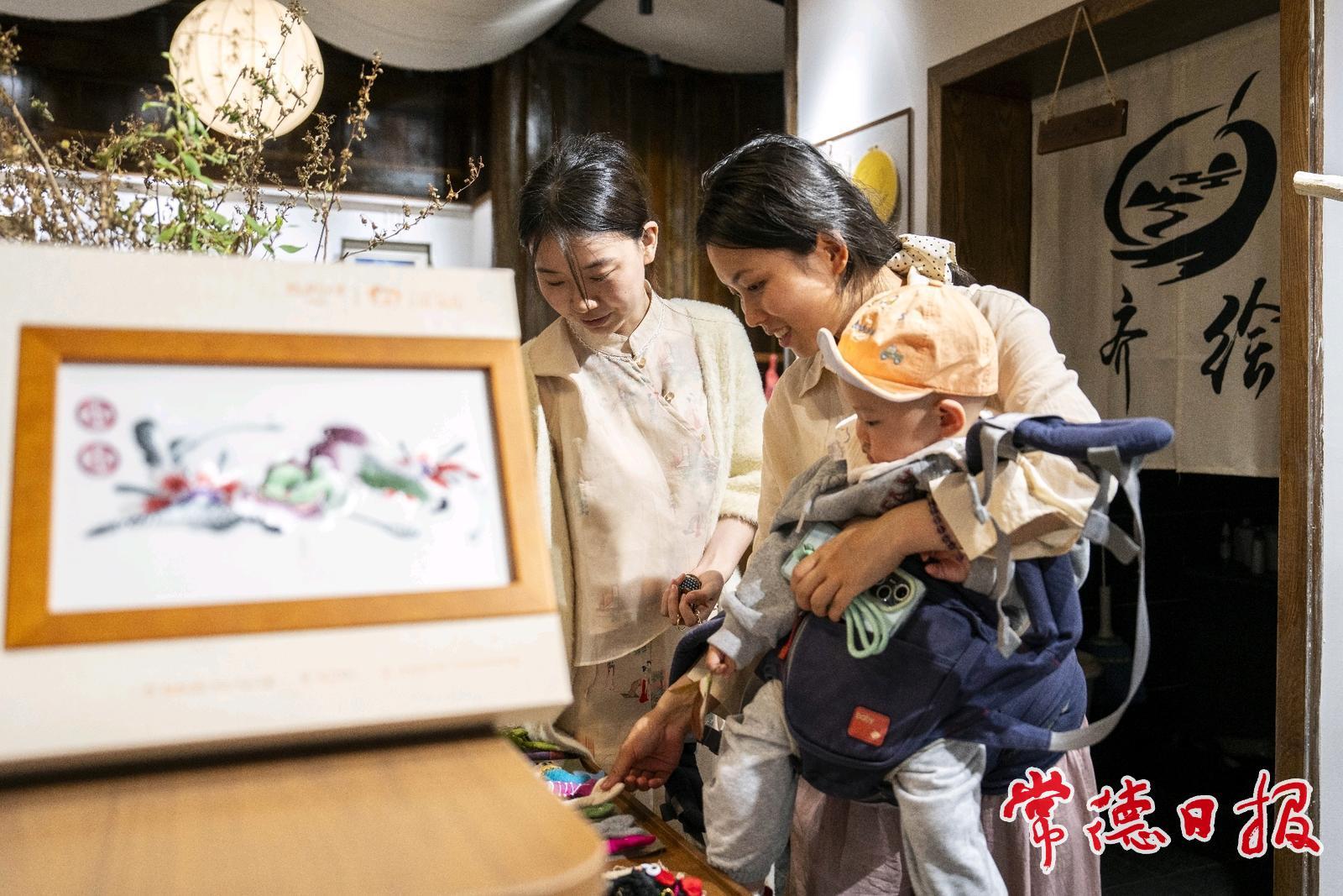 肖瑤在“齊繪繡莊”向游客推介桃源刺繡
