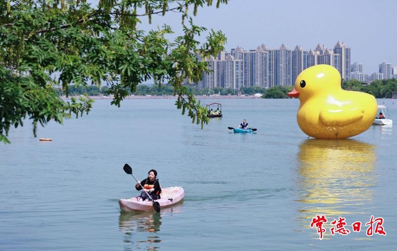 市民在柳葉湖體驗(yàn)皮劃艇