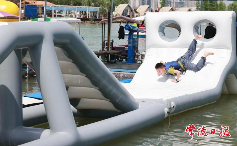 5月1日上午,位于柳葉湖旅游度假區(qū)的柳葉湖漁歌藝術(shù)營(yíng)地吸引了眾多游客前來(lái)游玩。全新推出的動(dòng)感水上樂(lè)園夏季親水項(xiàng)目,有水上香蕉船沖浪、新西蘭動(dòng)感漂移艇等,為市民游客帶來(lái)清涼與激情。現(xiàn)場(chǎng)還設(shè)置了柳葉湖親子小物釣體驗(yàn)區(qū),游客挑戰(zhàn)成功就可領(lǐng)取獎(jiǎng)品。