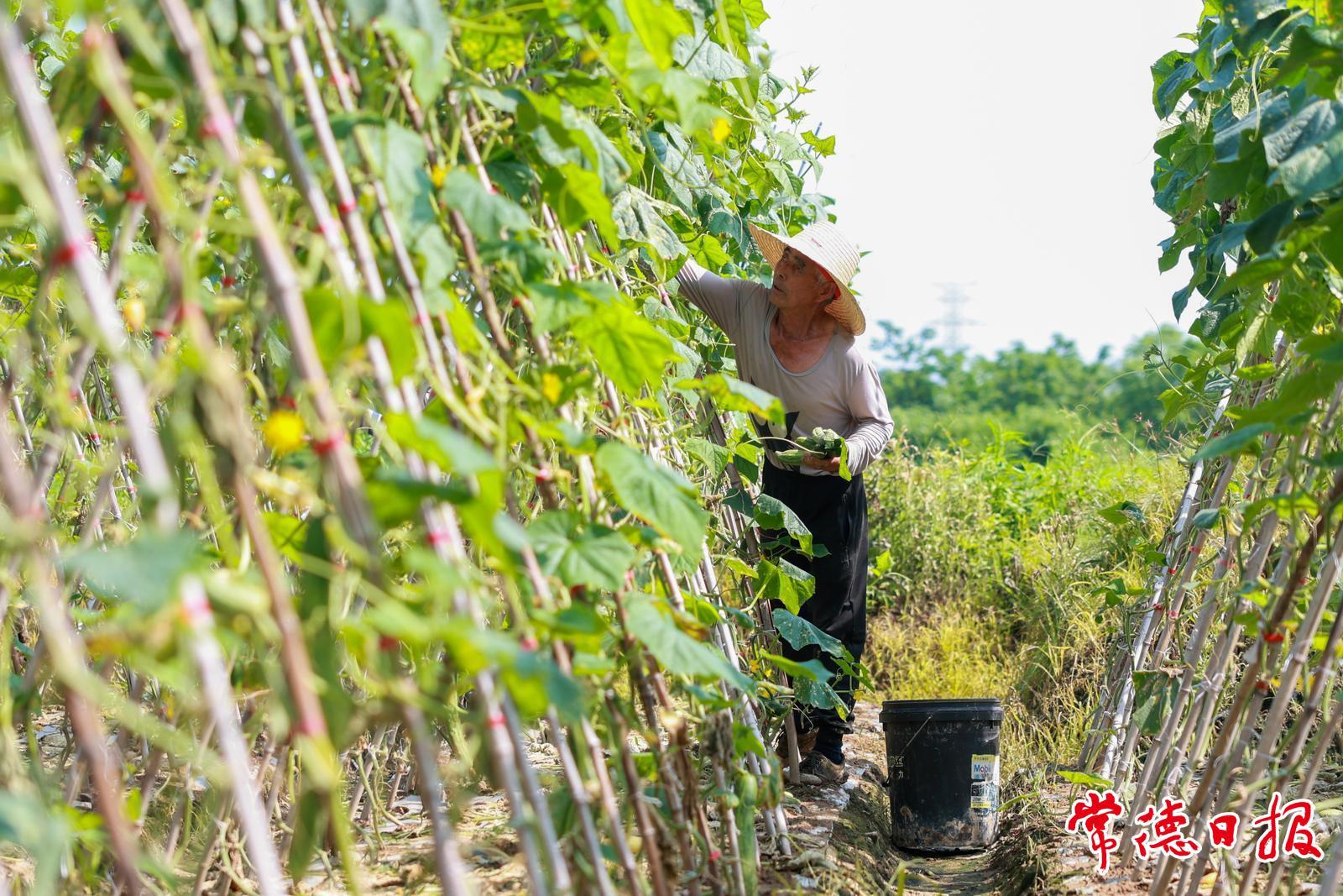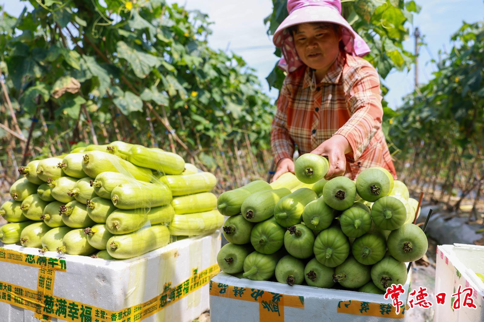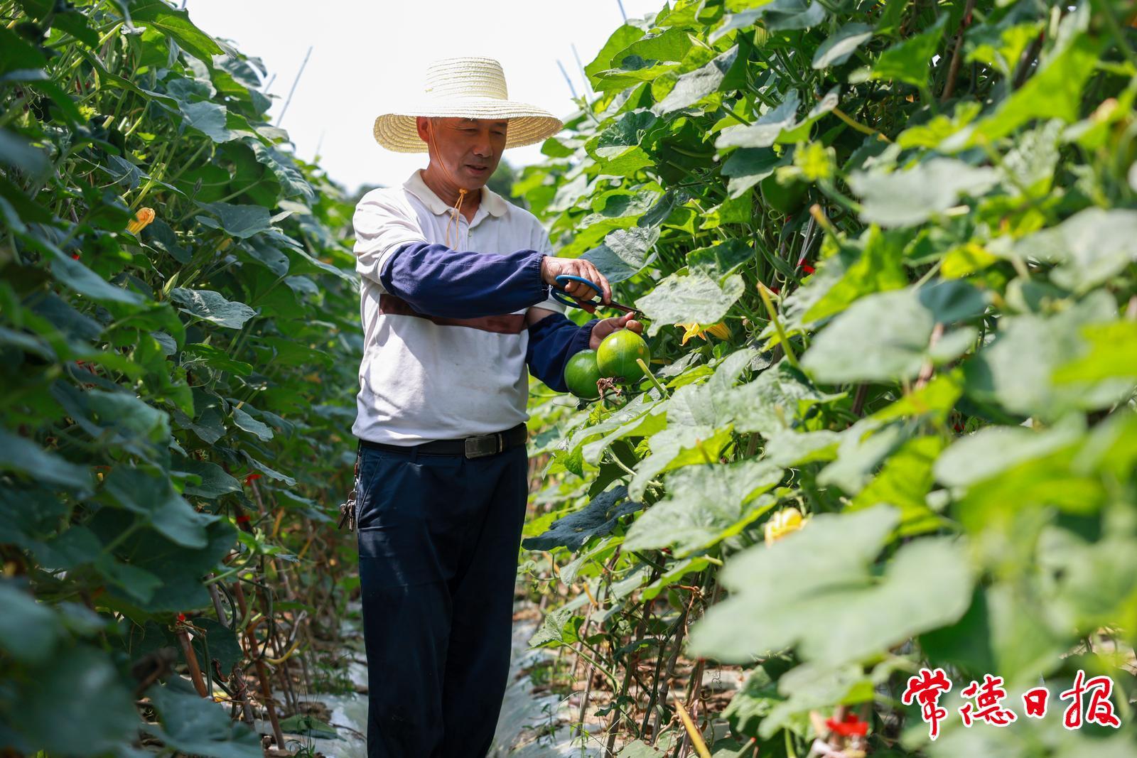 5月21日,在常德市武陵區(qū)東江街道白龍社區(qū),當?shù)鼐用裾诓烧z瓜,臉上洋溢著豐收的喜悅。
