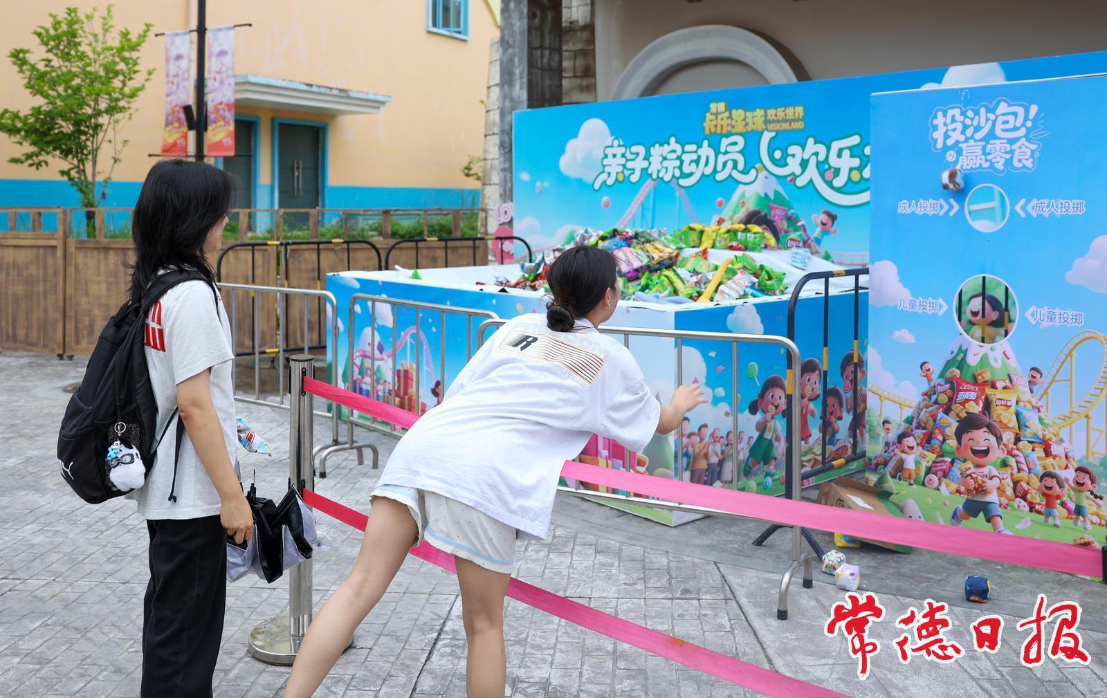 游客參與“投沙包贏零食”活動