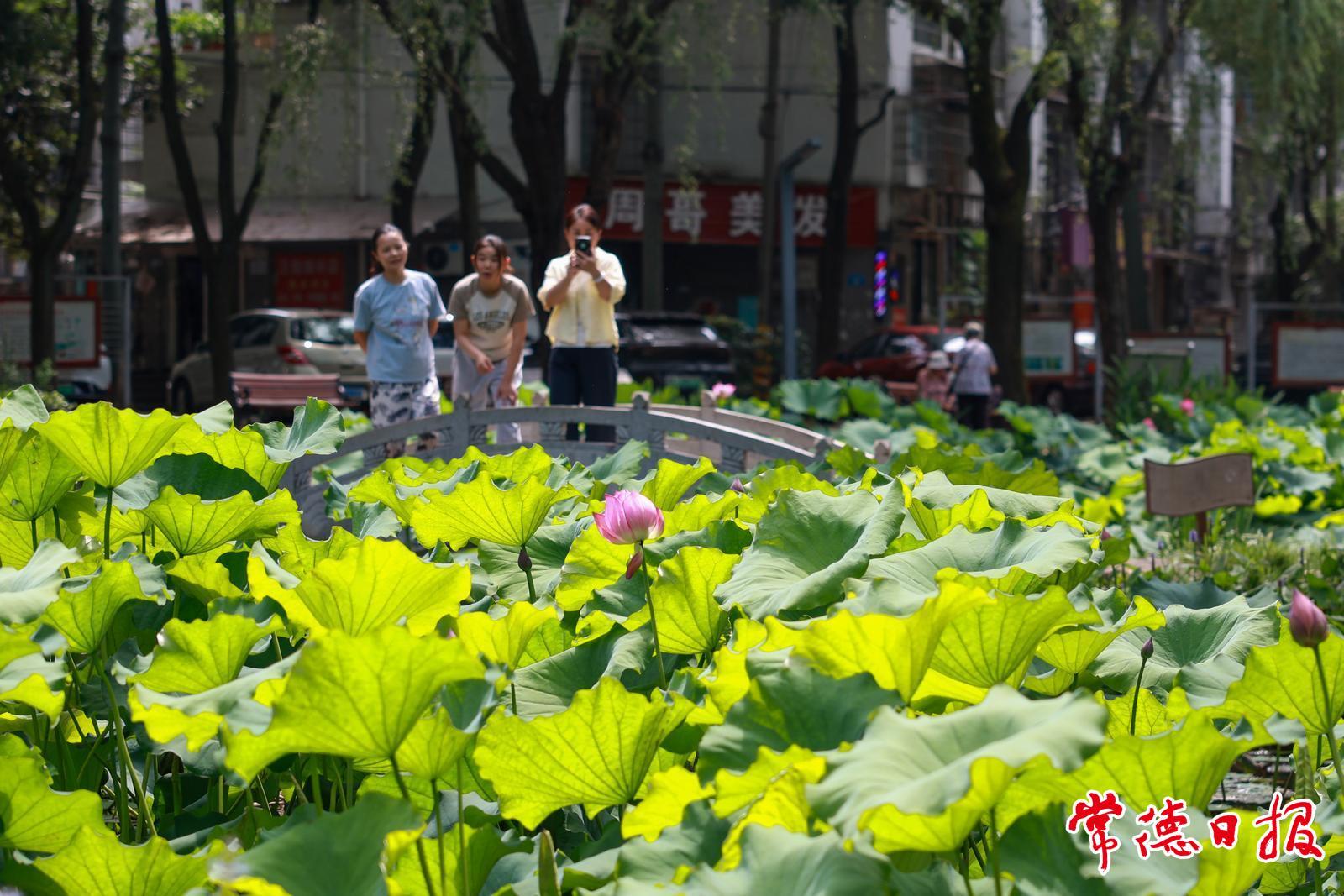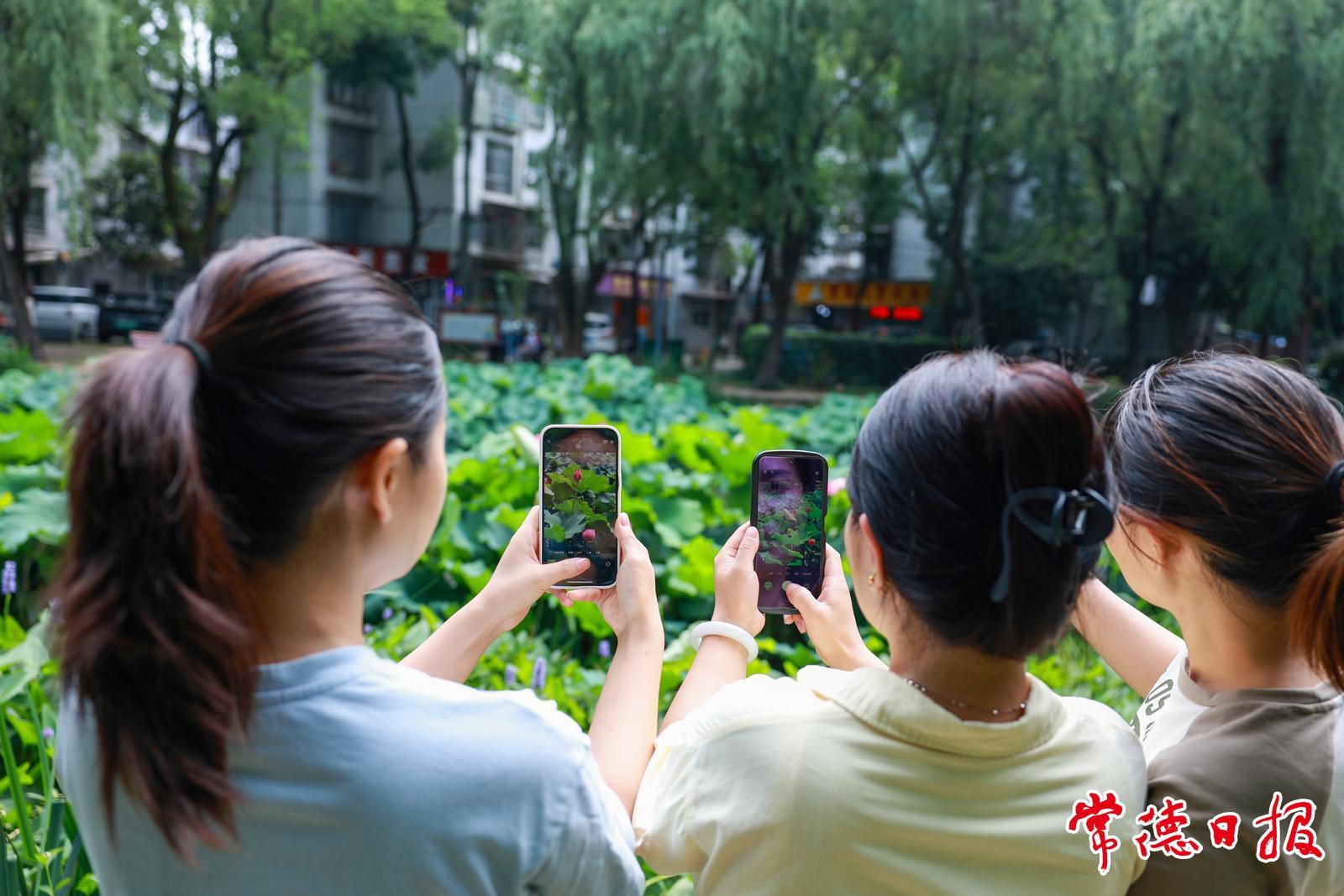 6月9日,常德市城區(qū)濱湖人防公園內(nèi),荷花競相綻放。它們或含苞待放,或嬌艷盛開,與田田荷葉相互映襯,勾勒出一幅如詩如畫的夏日美景。迷人的景致吸引了市民前來拍照打卡,記錄下這份夏日獨(dú)有的美好。