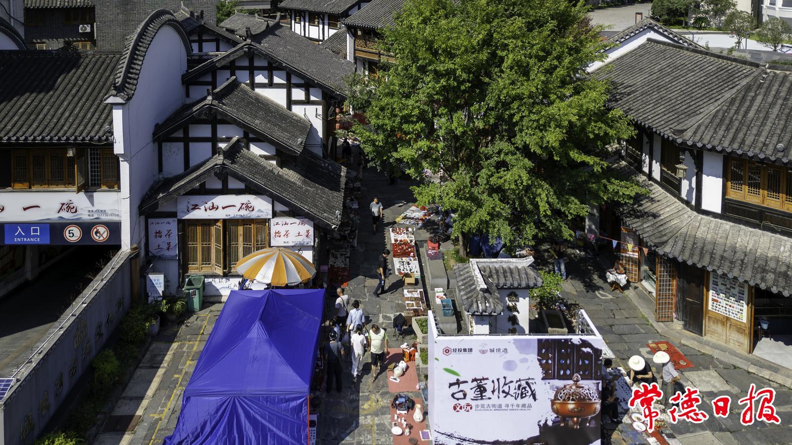 航拍常德城壕灣古玩藝術(shù)收藏品地?cái)偨涣鲿?huì)現(xiàn)場(chǎng)