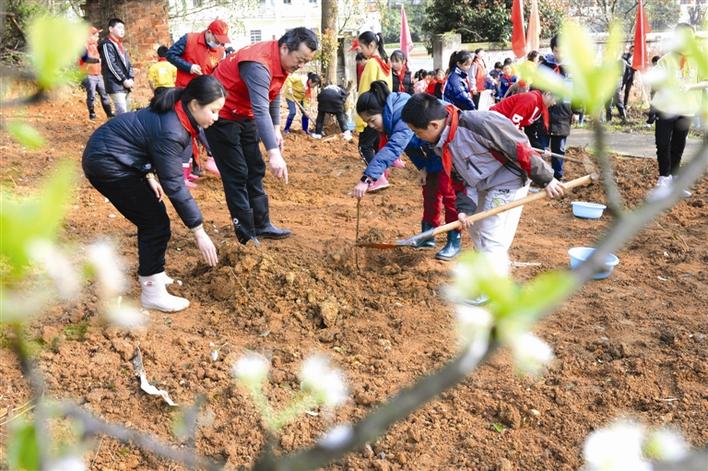 3月11日,桃源縣民政局30余名干部職工來到該縣楊溪橋鎮(zhèn)蔡家塘村里寶山開展了義務(wù)植樹活動。 本報記者 吳紫欣 通訊員 劉沛 攝
