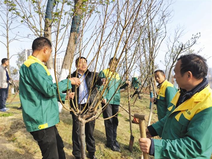 昨日上午,市園林綠化服務(wù)中心組織相關(guān)單位干部職工在穿紫河風(fēng)光帶以植樹造林的方式拉開了今年公益建綠興綠活動的序幕。本報記者 曾蘭 通訊員 謝劍峰 攝