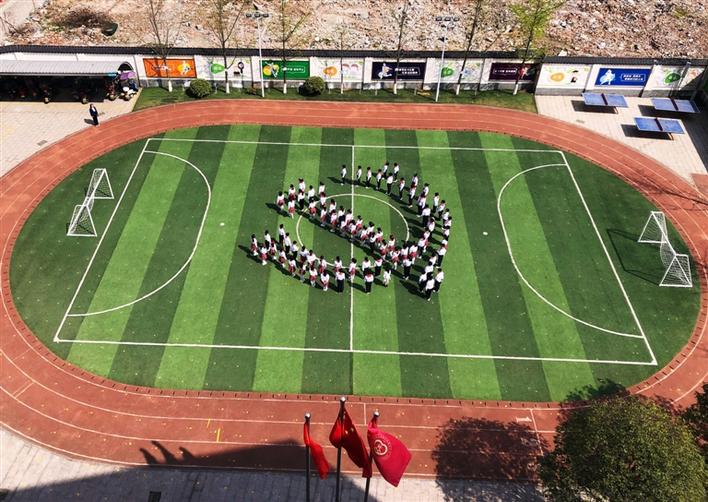 3月25日,武陵區(qū)甘露寺小學(xué)師生在大課間活動中擺出“黨徽”圖案,獻禮建黨100周年。春季開學(xué)以來,學(xué)校開展了“童心向黨”系列活動,學(xué)生們繪制了紅色地圖、進行了紅色走訪等。
