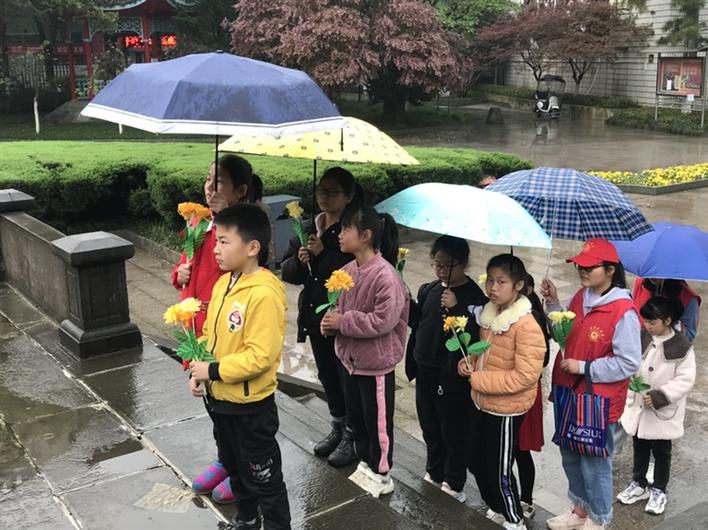 在清明節(jié)來臨之際,3月27日上午,東江街道浮橋社區(qū)志愿者與社區(qū)留守兒童拿著自己親手制作的手工菊花,來到常德會戰(zhàn)抗日紀(jì)念碑前祭奠英烈,表達(dá)對烈士的崇敬之情。