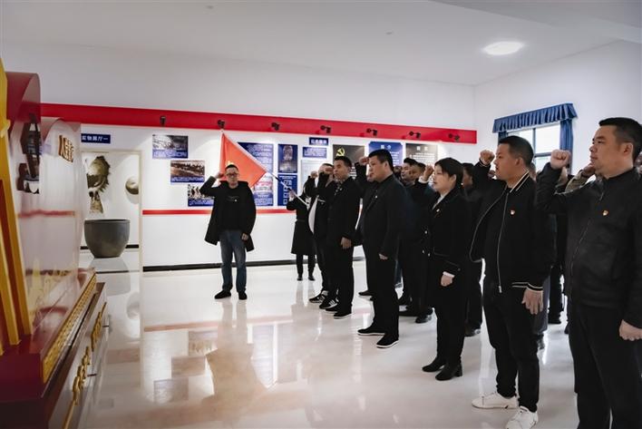清明節(jié)前夕,修葺一新的“漢益沅聯(lián)區(qū)蘇維埃政府革命歷史陳列館”向社會(huì)開放,參觀者在館內(nèi)重溫入黨誓詞。曾明山 攝