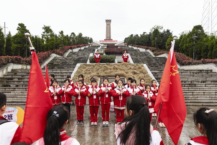 4月1日,桃源縣中小學(xué)生代表冒著細(xì)雨,在桃源烈士紀(jì)念碑前,開展“緬懷革命先烈,弘揚(yáng)民族精神”系列活動(dòng)。 周桂成 攝